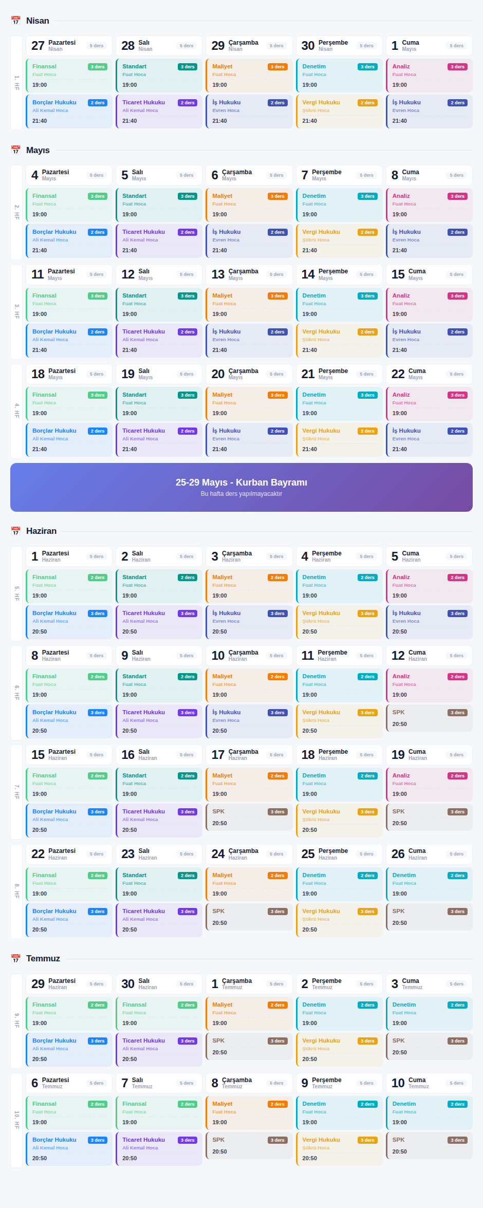 | Oturum | Saat Aralığı | Ders Adı | Süre |