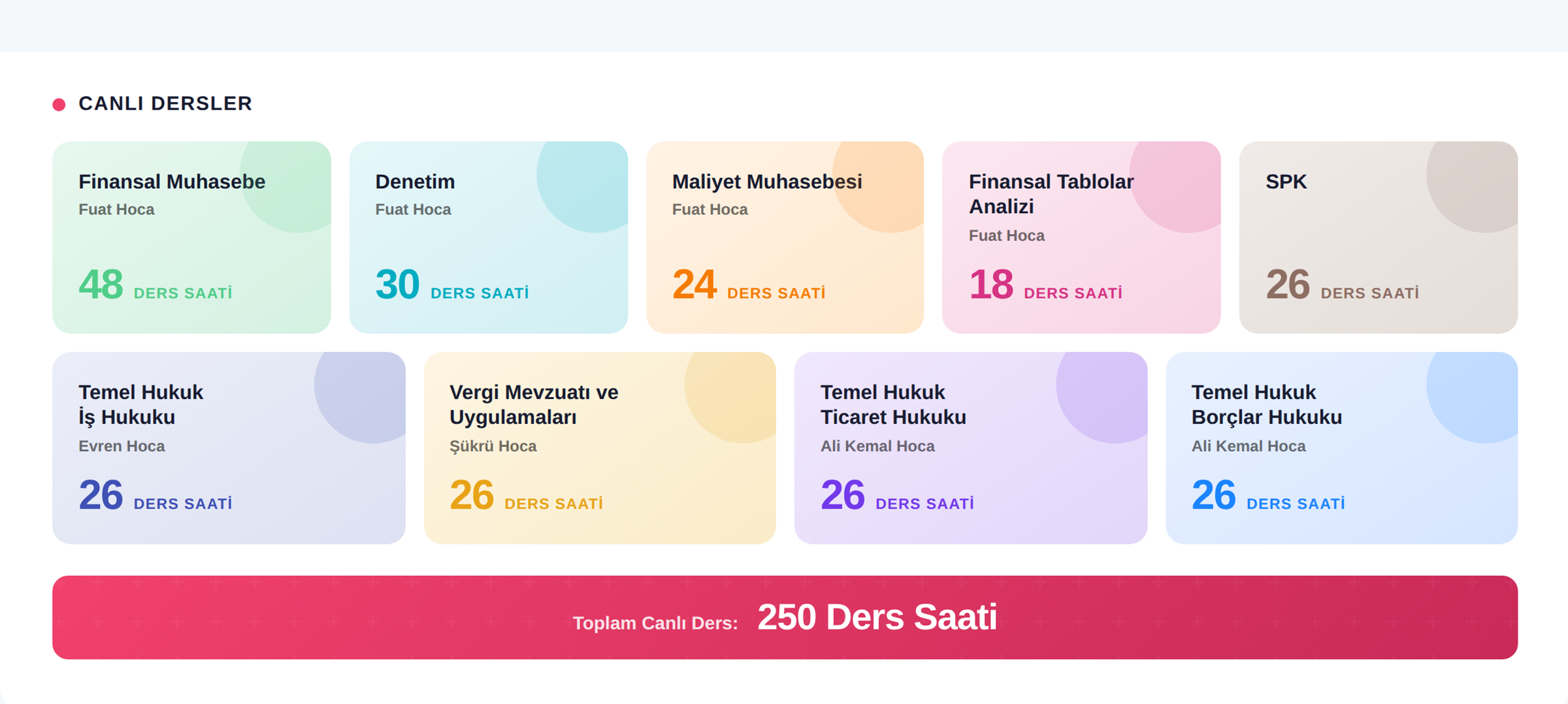 - İlk Başvuru (1.260 TL x 8 ders) 10.080,00 ₺